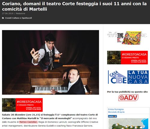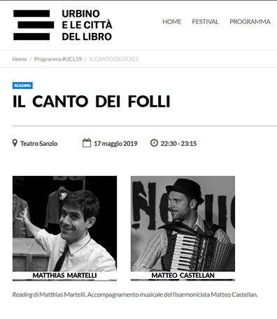 Matthias Martelli è uno dei più grandi attori del teatro italiano. Il suo "Mistero Buffo", capolavoro del premio Nobel Dario Fo, ha conquistato tutta l'Italia.
