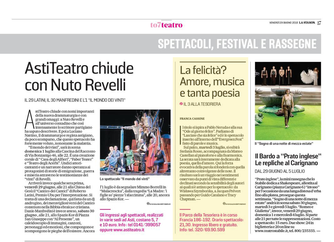 E' basato su poesia accompagnata dalla musica: Neruda, Bukowsky, Zimborjska, Montale e altri grandi.
