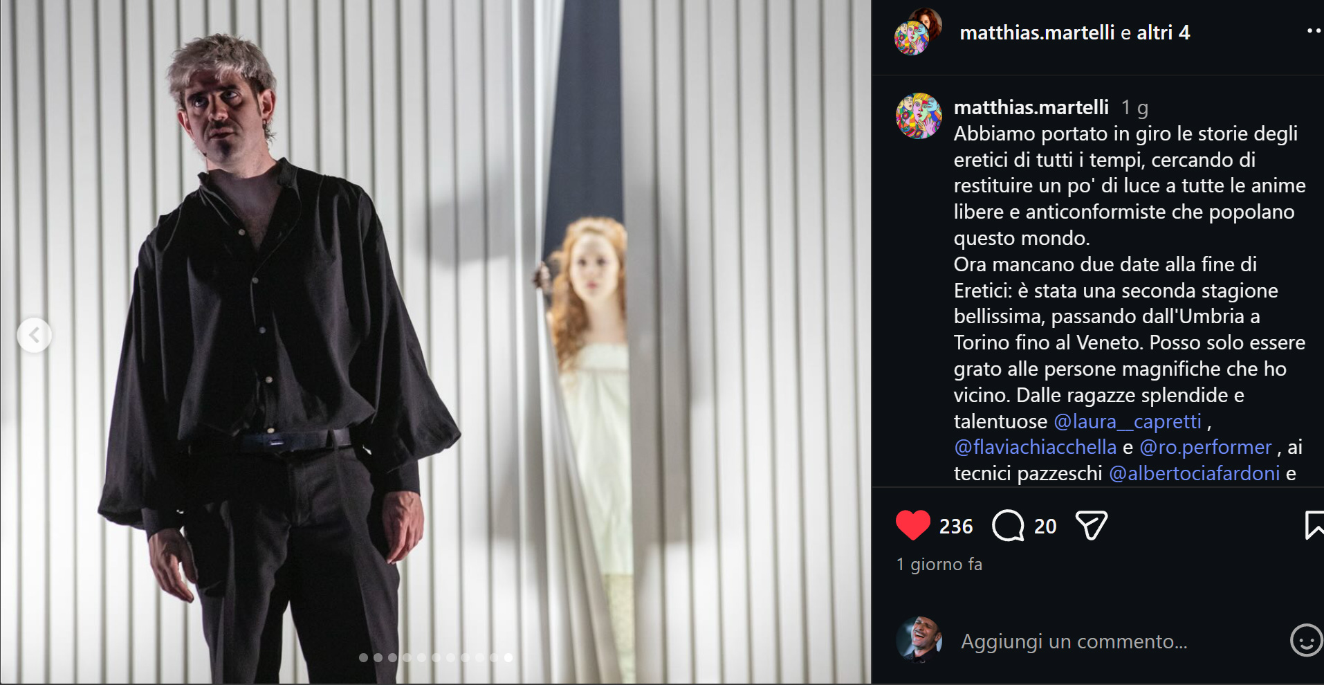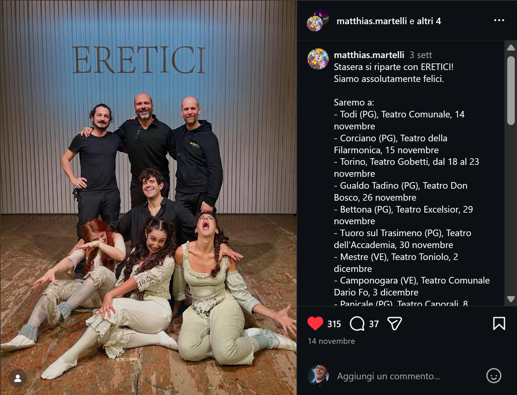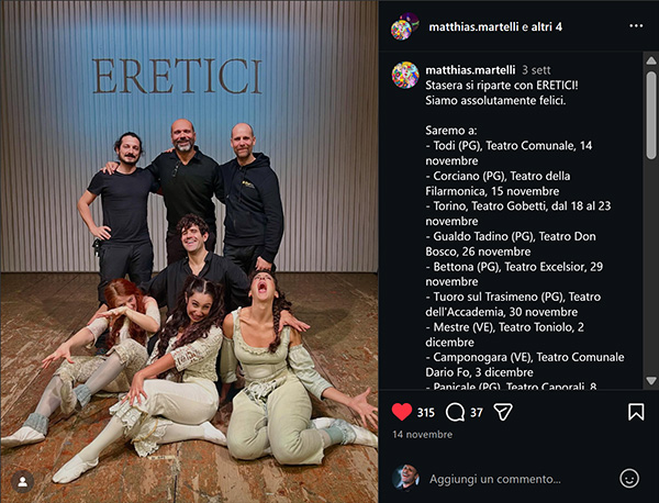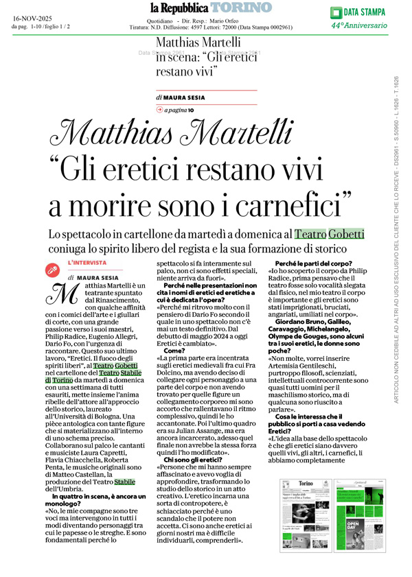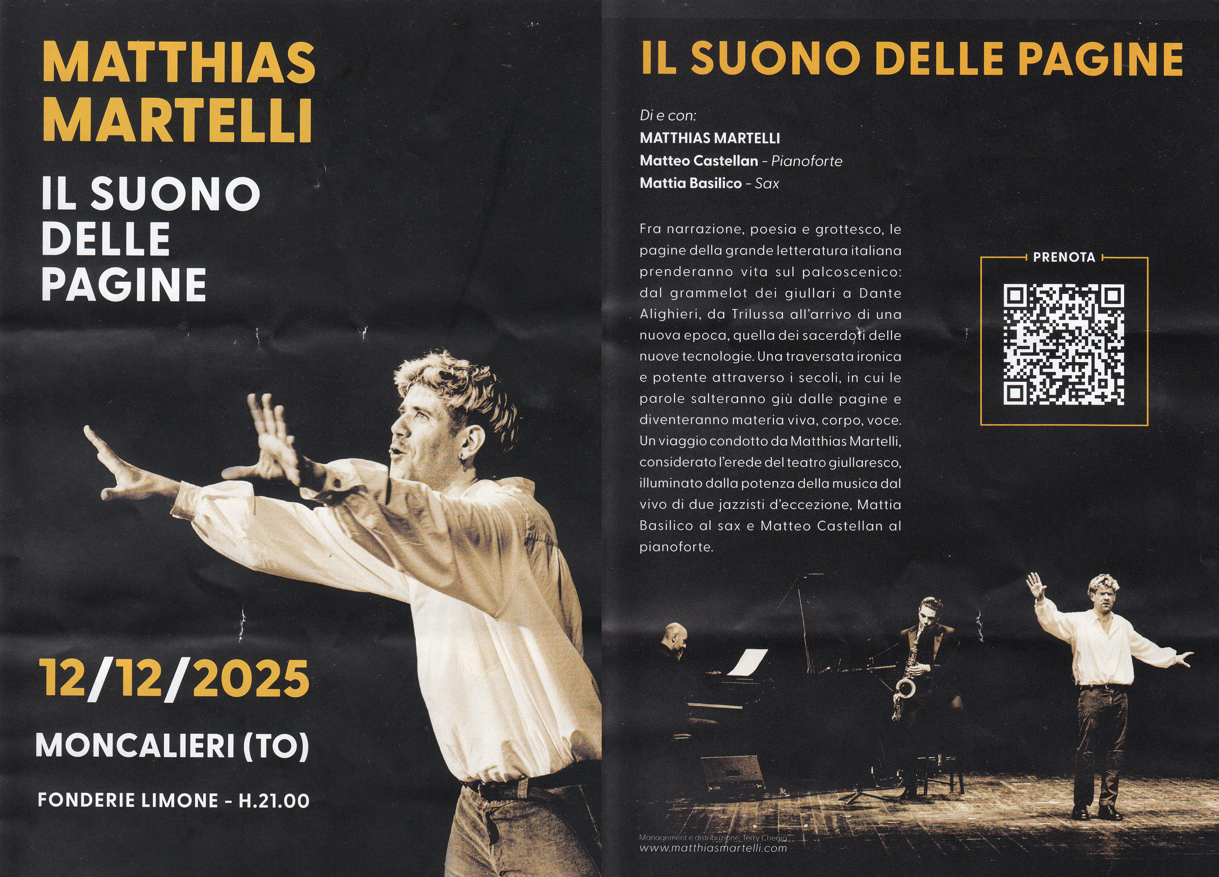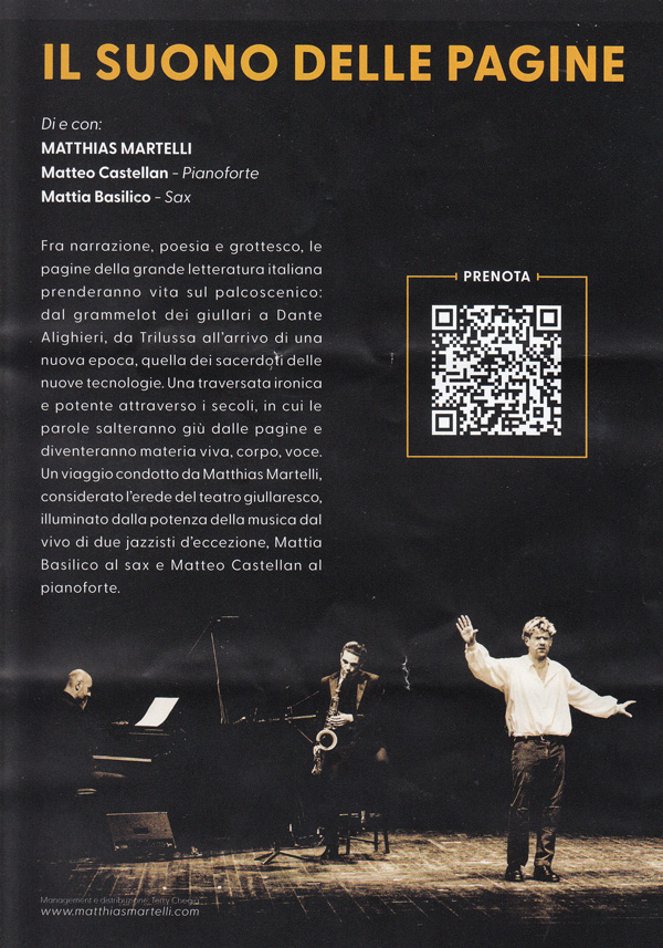 Matthias Martelli è uno dei più grandi attori del teatro italiano. Il suo "Mistero Buffo", capolavoro del premio Nobel Dario Fo, ha conquistato tutta l'Italia.